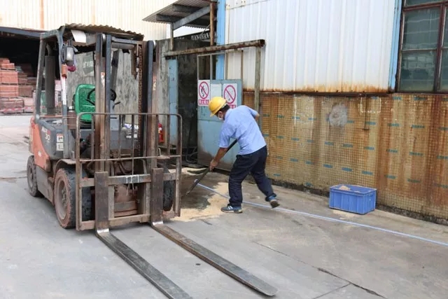 本次消防演練按照預定的方案,有序、緊張地進行。主要是應對柴油泄露、柴油火災或爆炸、叉車意外傷人等突發情況進行模擬教學演練。
