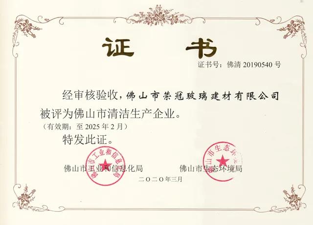 日前,佛山市工業和信息化局、佛山市生態環境局發布了《第二十二批佛山市清潔生產企業名單 》,經審核驗收,佛山市榮冠玻璃建材有限公司獲評佛山市清潔生產企業